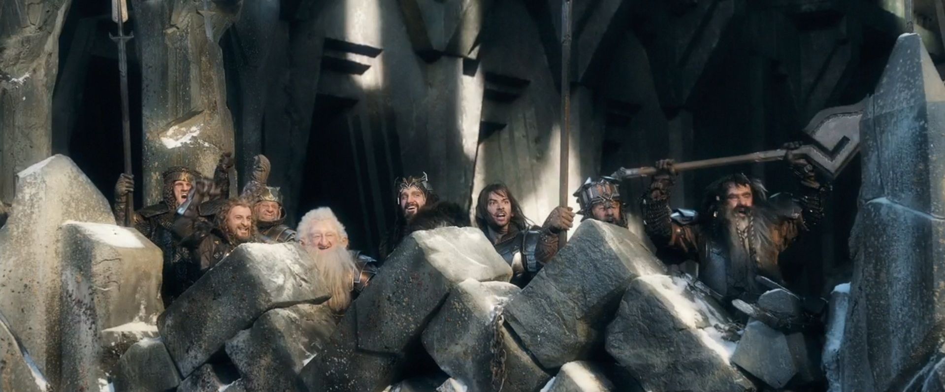 1pr163 best269 lotrF251 Cirth original Balrog por Turin_ca Júbilo en el parapeto de Erebor Bofur derriba a un Troll Mark Hadlow, Adam Brown y Jed Brophy La vara de Gandalf no funciona Gollum, furioso Gandalf en Dol Guldur Thorin está dispuesto a conservar su hogar a cualquier precio
