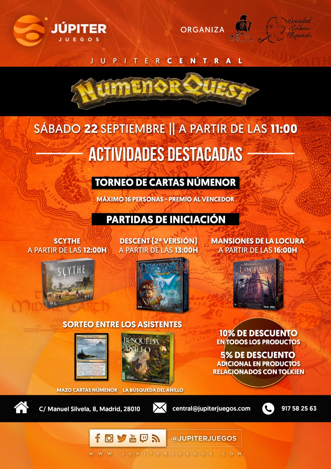 Esta nueva edición de la Númenorquest se celebrará el sábado 22 de septiembre en la central de Júpiter Juegos de Madrid (c/ Manuel Silvela nº 8) a partir de las 11:00 horas. La asistencia y participación es libre y gratuita.