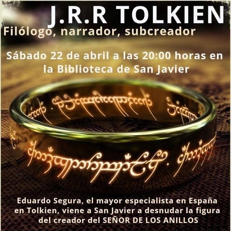 La conferencia ‘J.R.R. Tolkien: Filólogo, narrador, sucreador‘ se celebrará este sábado 22 de abril en la Biblioteca pública de San Javier (c/ Coronel Fernández Tudela nº 29) a las 20:00 horas. La entrada es libre y gratuita hasta completar aforo.