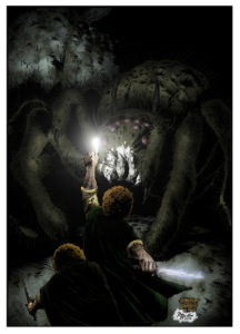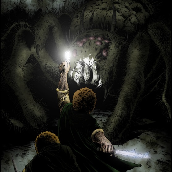 (Frodo se enfrenta a Ella-Laraña, según los artista brasileños Hélcio Rogério y Ricardo Martins)