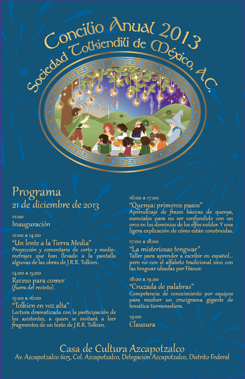 Como han informado a través de su cuenta de Twitter, este sábado 21 de Diciembre se celebra el Concilio Anual de la Sociedad Tolkiendili de México en la Casa de Cultura Azcapotzalco del Distrito Federal.