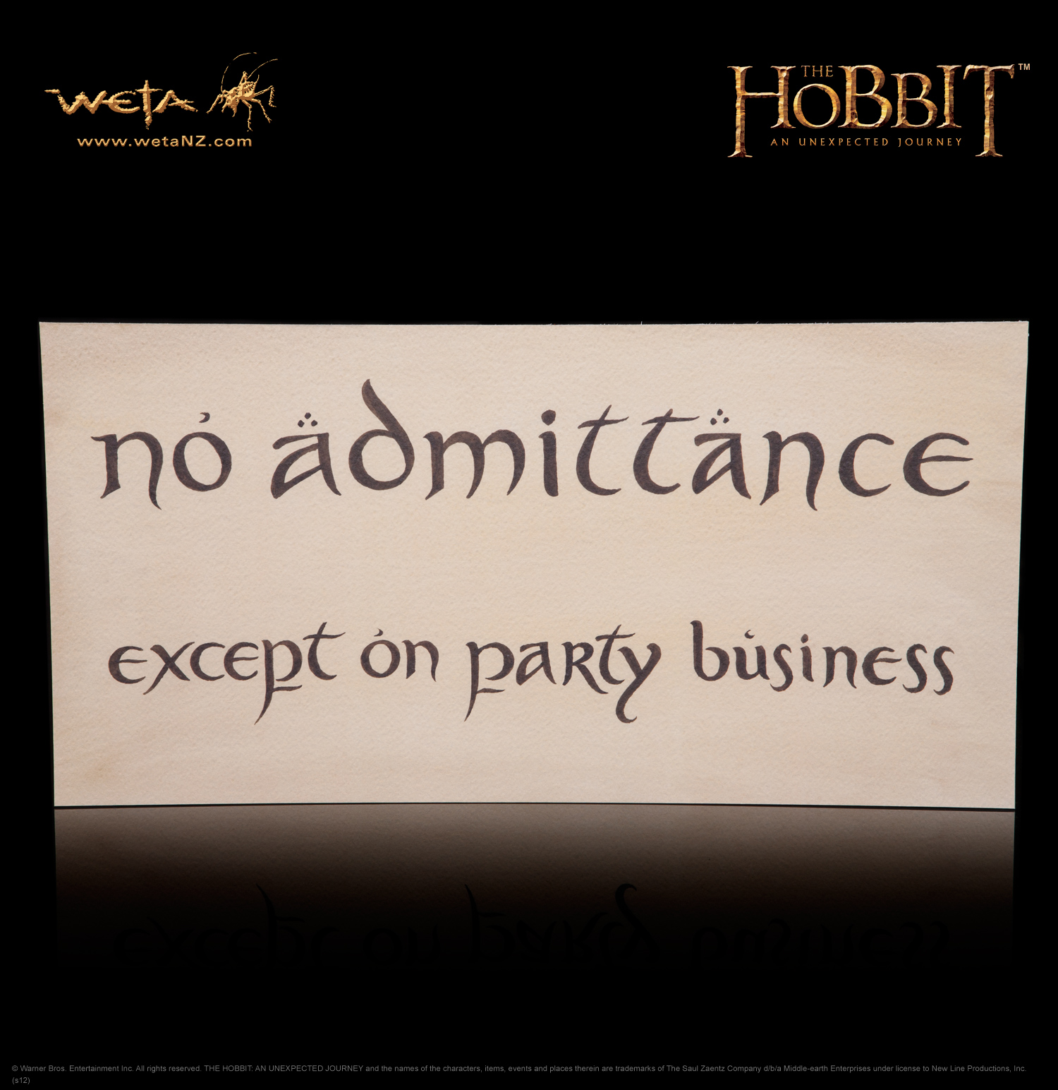 En la segunda noticia informan de los nuevos productos que ha puesto a la venta Weta Workshop: un pin de coleccionista de Un Viaje Inesperado (cuyo precio es de 10’99 dólares, unos 8 euros), un pin de coleccionista de La Desolación de Smaug (cuyo precio también es de 10’99 dólares, unos 8 euros), la señal de ‘prohibido la entrada excepto por asuntos de la fiesta’ en inglés (cuyo precio es de 14’99 dólares, unos 11 euros), una moneda del tesoro de Smaug (la primera de cinco modelos, cuyo precio es de 7’99 dólares, unos 6 euros), y una camiseta con un diseño élfico (cuyo precio es de 29’99 dólares, unos 21 euros).