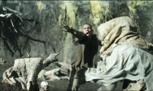 Su destino estaba sellado pero un orco ordena llevarlo ante Adar. El último plano del capítulo muestra una figura de apariencia élfica a la que no podemos ver el rostro avanza entre los orcos, que le reciben con cánticos en su nombre e inclinándose ante él. Tendremos que esperar para conocer la identidad del misterioso Adar.