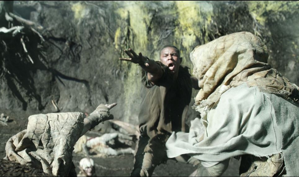 Posteriormente, en un descuido de los orcos se desata un combate entre ellos y los encadenados elfos, que logran usar sus cadenas y la luz del sol para dañar a sus captores mientras rompen sus ataduras. Los orcos sueltan un huargo, cuya apariencia ha levantado polémica y no menos memes entre los fans. Arondir se enfrenta a él y trata de encerrarlo en las raíces del árbol para que el Guardián Mayor pueda escapar. Sin embargo todo es en vano ya que Arondir, tras dar muerte al jefe orco y al huargo, solo alcanza a ver el terreno desolado y al Guardian Mayor abatido a flechazos ante sus ojos antes de ser nuevamente apresado.