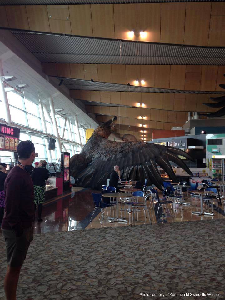 Wellington earthquake brings giant eagle down in @WLGAirport. Thankfully, no one was hurt! http://t.co/QkqpYsn7ma pic.twitter.com/zBuOjEe92O